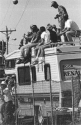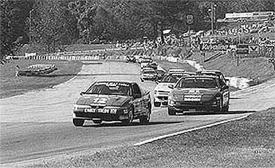 ところがショールームストックは26分の4に過ぎない。SCCAレースには、日本中のカテゴリーを集めても足りないほどに豊富なクルマが走っている。写真のアルファ。GTクラスのマシン。コストが安く、整備が簡単なチューブフレーム。実に本格的なレーシングカーを個人が作り上げ、所有する。日本人が見たらよだれをたらすと思うヨ。ショールームストックレースが開催できたら、次はアメリカ製超ど級ツーリングカーレースをやってみたい。