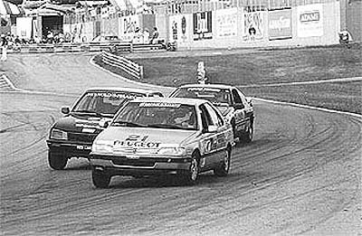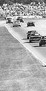 ドラフト(スリップストリーム)のよく効く高速コースだから、いつまでたっても後続を引き離せない。1コーナーのターンイン。目の前にクルマ。助手席のドアにくっつきそうに走るクルマ。リアビューミラーの中は、クルマだらけ。